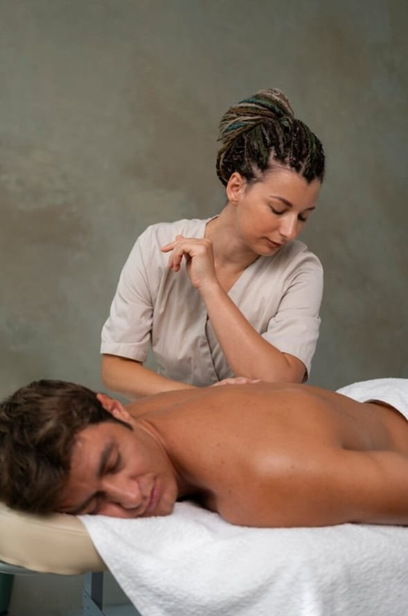 Deep Tissue Massage focuses on deeper layers of muscles to relieve chronic pain and stiffness. It helps reduce muscle tension, improve mobility, and promote overall healing.